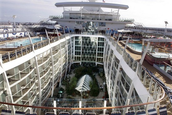 世界最大游輪“海洋綠洲”號(hào)本月初首航。這艘巨輪能夠容納超過(guò)8000人,除客房、餐飲和購(gòu)物場(chǎng)所及各類運(yùn)動(dòng)場(chǎng)館外,還配備綠地公園、兒童游樂(lè)場(chǎng)、賭場(chǎng)和攀巖壁等,設(shè)施之完備堪比一座陸上城市。