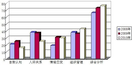 人際關(guān)系能力考察也由2009年的18%降低到2010年的13%,說明人際關(guān)系也漸漸淡出命題人視野??v然人際關(guān)系題目比例降低,但是難度卻隨之增加,元素更加豐富,線索更加交織,以增加考生作答難度,從而形成區(qū)別度,使得更優(yōu)秀的考生能脫穎而出。